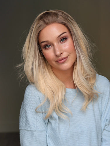 Raregen Dora 14” | Silk-Inserted Lace Top Wig-Ultra-light Blonde with Subtle Ash Root