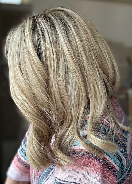 Raregen Dora 14” | Silk-Inserted Lace Top Wig-Ultra-light Blonde with Subtle Ash Root